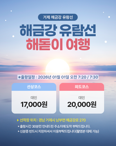 2026년 해돋이기념 해금강 선상 관광 후 외도 상륙관광 까지 (2시간 40분 코스)*외도입장료 유람선